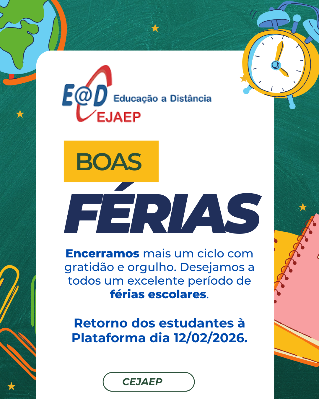 • INSCRIÇÕES ABERTAS: EJA